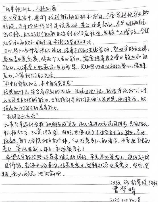 活动期间,各位学长学姐结合自己的在校经历,将自己想对新生说的话写下来分享给大家,为各位新生提供了全方位、多角度的生活学习经验、建议,希望他们可以拥有一个快乐充实的老员工活。