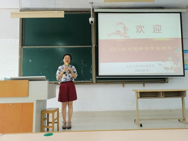 地理科学系主任邸向红老师,首先向新生系统的介绍了大学,让同学们对大学有了一定的认识,其次为同学们介绍了地理科学系,并深度剖析何为地理、何为地理科学,即本专业大学四年的学习内容、本专业的学习方法以及如何正确的规划大学四年等。