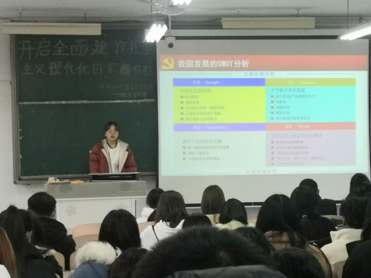 为深入学习十九届五中全会精神“开启全面建设社会主义现代化强国新征程”,领会“一个主题、二件大事、三个‘新’、“四个全面”、五大理念、六个目标”。2019级航空班团支部于11月26日开展了以“深入学习五中全会精神”为主题的团日活动。
