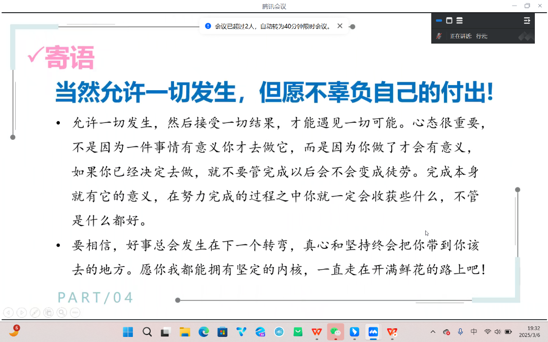 会议邀请了成功上岸的优秀毕业生以线上会议形式进行经验分享。他们从考研复试和调剂等方面展开了详细的讲解。在考研复试的面试过程中,要保持冷静与自信,条理清晰地回答问题,展现自身学习的潜力。针对考研调剂,他们从调剂要求、信息筛选和调剂方向进行了深入分析,指出考生要冷静审视自身条件,精准匹配调剂院校专业,同时调整心态,做好人生多选项规划,切不可因一时挫折而丧失信心。