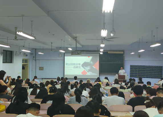 会上,陈勇、郭瑞雪、宋晓迪3位同学就考研上岸展开了详细讲解,分别从择校、各科备考经验与技巧、复试经验、心态调整等方面进行了分享与指导,建议同学们综合考虑自身情况选择院校、制定学习计划。张儒睿同学则就选调生上岸经验进行了分享与指导,他从认识自我、备考过程、简历制作、面试技巧等方面详细介绍了在考公准备过程中的心得体会。4名同学还表示,大学四年需要一个合理的规划,在每个阶段都有需要完成的事情。同时,他们还向2023级的学弟学妹们表达了自己的祝福与希望。会后同学们就关心的问题进行提问,4位分享者进行了耐心解答。
