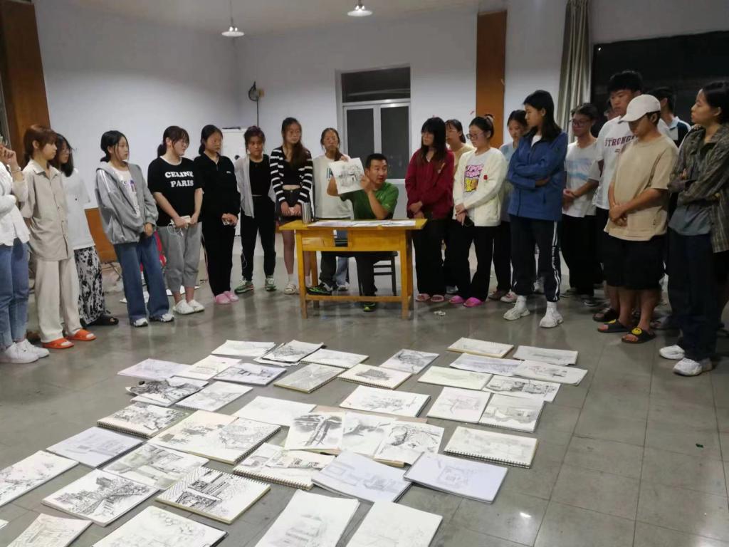 实习期间,在公司陈广凤老师和美术公司杨广宇老师的带领下,同学们进行实地考察。内容主要包括对鲁中山区古村落、民俗建筑及自然景观等进行采风写生,同时本次实习还对当地山区民宿进行了考察调研。全体同学学习热情高涨,每天在不同地点进行写生实习,并在返回实习基地后于基地画室由指导老师对作品进行细致的现场讲评和逐一指导,使员工了解素描速写构图技巧、光影关系和画面内容归纳整理方法等基础知识并对作品进行修改完善。