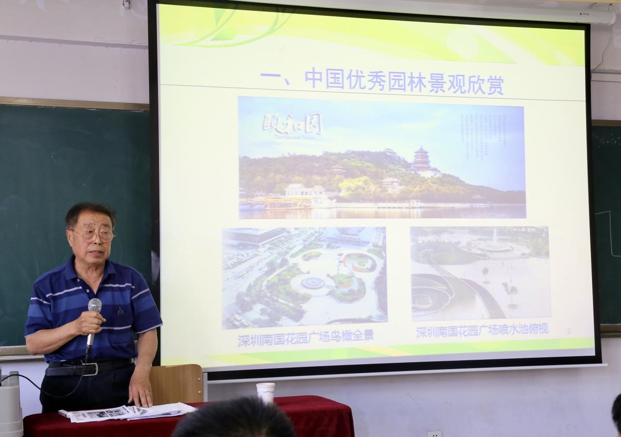 德州市园林绿化行业协会会长、山东绿科园林绿化工程有限公司总经理、高级园林工程师季国志做了《绿化苗木反季节种植技术措施》主题报告,介绍了绿化苗木行业反季节种植存在的问题,原因及应对措施,并分析了目前园林行业人才需求等。随后,原德州市园林处副主任、德州市盐碱土绿化研究所所长、高级园林工程师魏坤峰做了《中国园林发展新趋势》报告,结合个人工作经历介绍了优秀园林景观要素、中国园林发展趋势、大树移植的前沿技术、盐碱地绿化的新经验等,并对应用型人才培养提出指导建议。