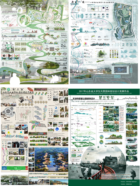 丰富的实践活动,体现应用特点。风景园林专业实践占比达到22%,体现了专业的实践特点,课程设计很多都以实际环境和需求展开;毕业设计选题中要求必须以符合上位规划的实际地块进行设计。