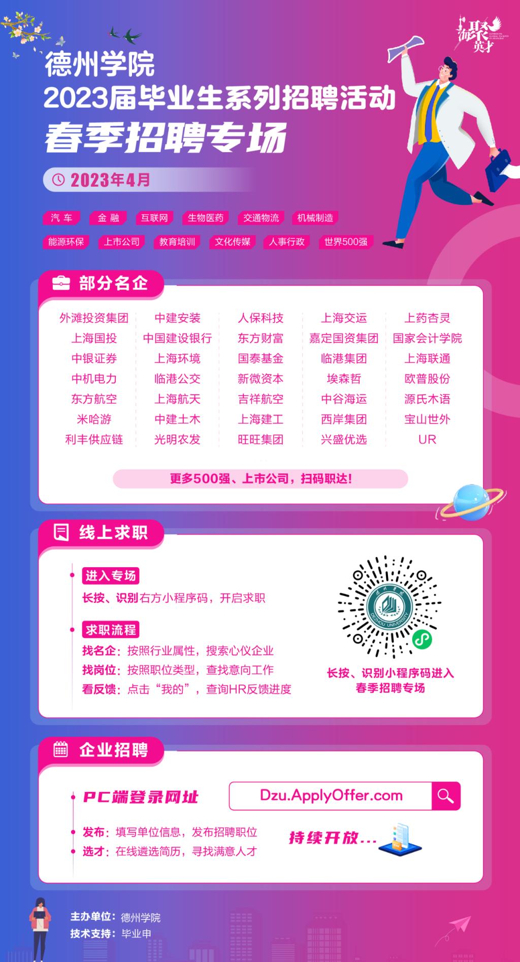 为贯彻落实教育部关于2023届毕业生就业工作的总体部署,深入开展就业育人工作,持续推进毕业生与用人单位精准供需对接,为公司毕业生高质量就业拓宽渠道,现决定举办专场招聘活动。