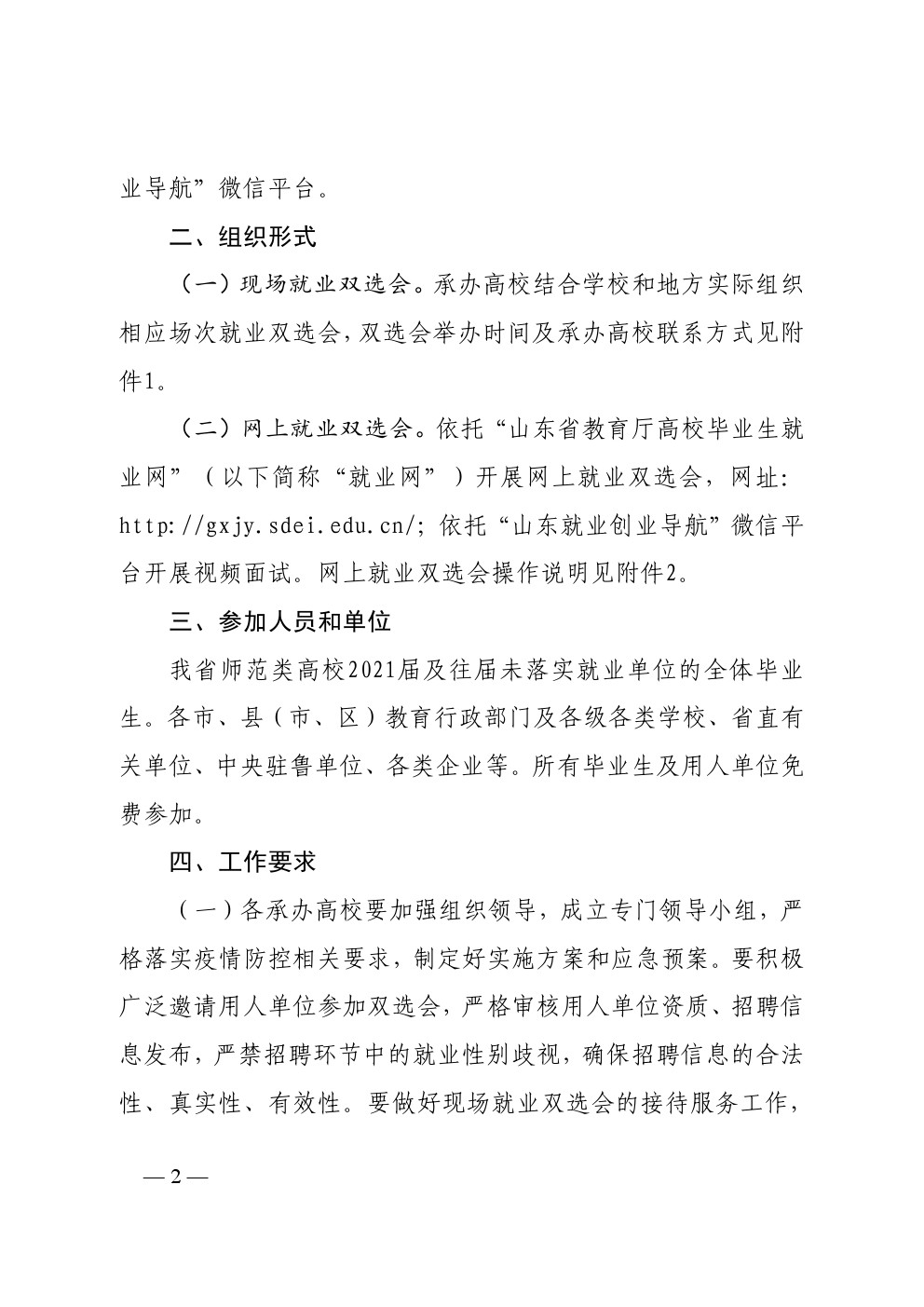 山东省教育厅关于做好2021年师范类高校毕业生就业双选会工作的通知