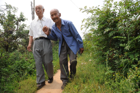 图3小林宽澄和当年新泰老房东的儿子在一起(资料图)