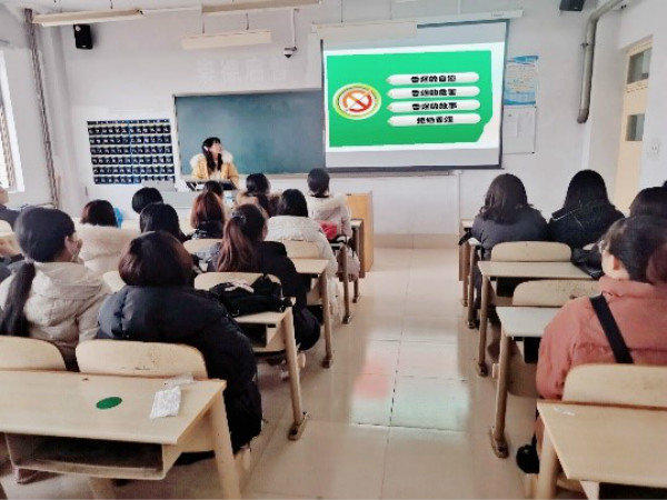 活动伊始,19级旅游管理一班团支书给同学们讲述了烟草的危害,让同学们了解到了吸烟的危害,倡导同学们自觉远离烟草,珍爱生命,营造无烟校园环境,并让同学们树立社会责任感和使命感,共创一个没有烟草危害的清新校园,为构建和谐社会贡献力量。活动最后,同学们都主动做禁烟使者,做到自身不吸烟的同时劝诫他人不吸烟,为打造无烟校园献出一份力量。