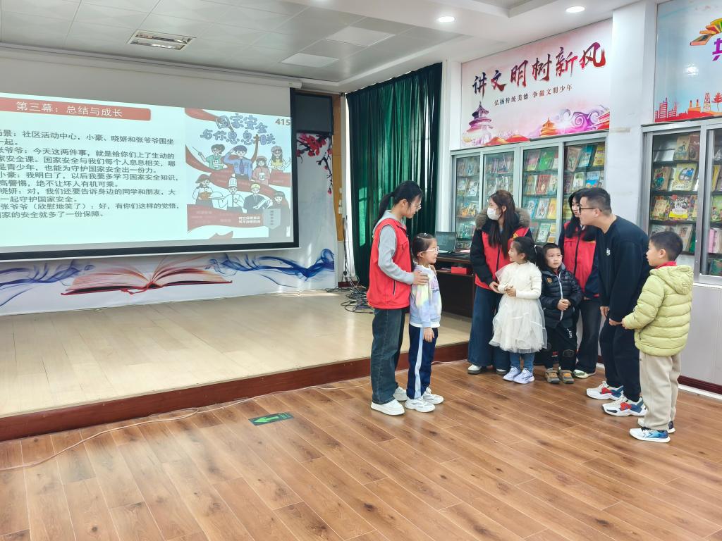 活动当天,志愿者化身“安全卫士”,通过通俗易懂的故事与趣味的问答游戏形式,围绕政治安全、网络安全、生态安全、文化安全等多个领域,向小朋友们讲述了国家安全的重要性。学乐相融中,让他们认识到维护国家安全是每个公民的责任和义务。接着通过国家安全创意手工与情景剧场环节,让小朋友们在动手实践与模拟实践中,进一步了解国家安全相关理论,营造“国家安全 人人有责”的浓厚氛围。
