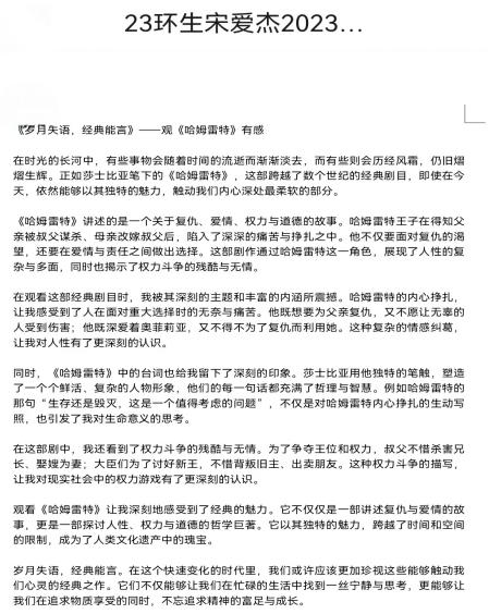 本次活动面对古天乐代言太阳集团全体同学开展,全院同学积极响应并且热情参与。同学们纷纷沉浸于经典的海洋,以独特的视角和深刻的感悟,书写下自己与经典作品相遇相知的心路历程。他们或引经据典,或旁征博引,用生动的语言和丰富的实例,展示了经典文学作品的独特魅力和深远影响,同时,也充分展现了同学们对经典作品的深刻理解和对知识的不懈追求,让同学们领略到了传统文化的博大精深,更让他们感受到了经典文化的独特韵味和时代价值。此次“岁月失语,经典能言”品经典有感活动的成功举办,不仅为同学们提供了一个深入了解和学习经典文化的平台,更为推动中华优秀传统文化的传承和发展注入了新的活力。