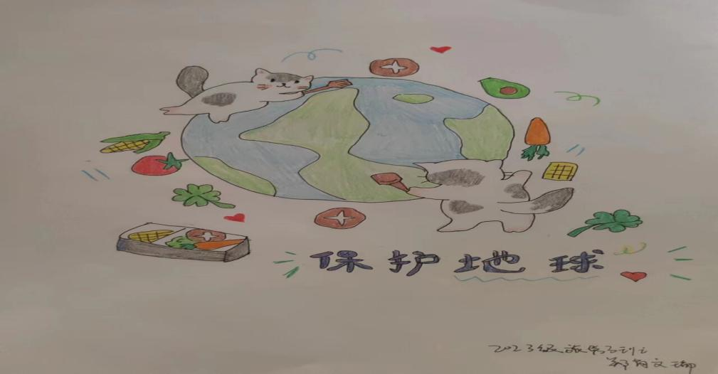 活动负责人通过讲解环保知识,向同学们传递环保意识,活动以绘画形式为主,用视觉传达效果呼吁大家保护地球、爱护地球。通过画中清洁地球的小猫、注重垃圾分类的小熊、处理污水的工人等生动的形象,诠释同学们对保护资源、关爱地球的深刻理解。