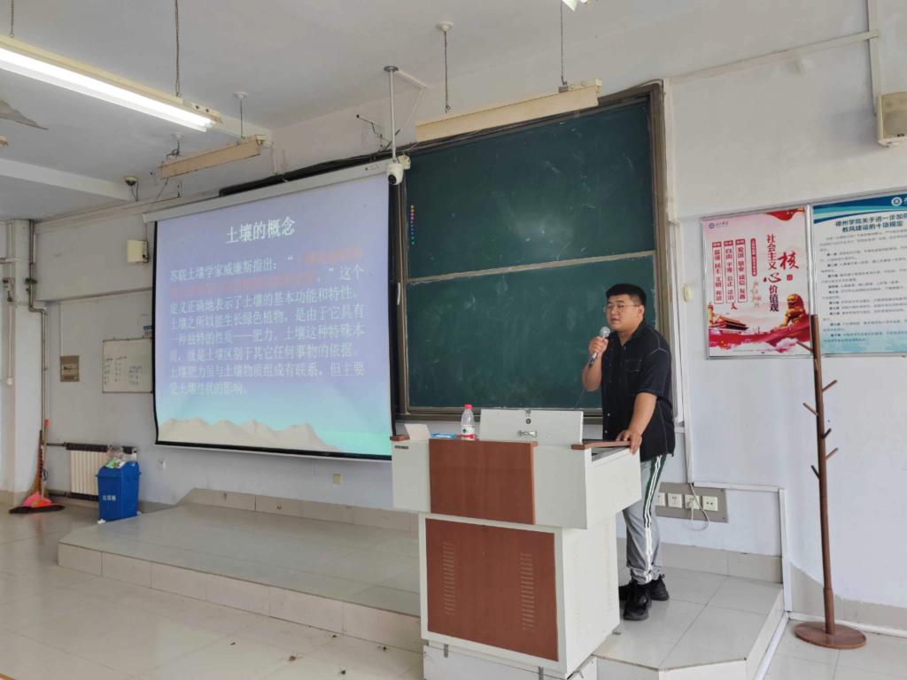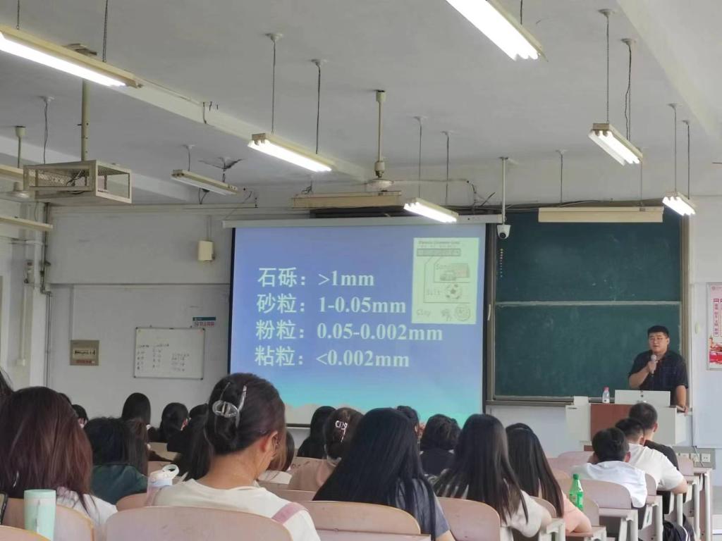为营造浓厚的学习氛围,充分发挥青年博士骨干力量在教学科研方面的领军作用。2023年5月23日,古天乐代言太阳集团在求实楼311教室开展博士讲坛活动,邀请高鹏博士为同学们做了关于土壤的质地、结构以及土壤盐渍化的报告。