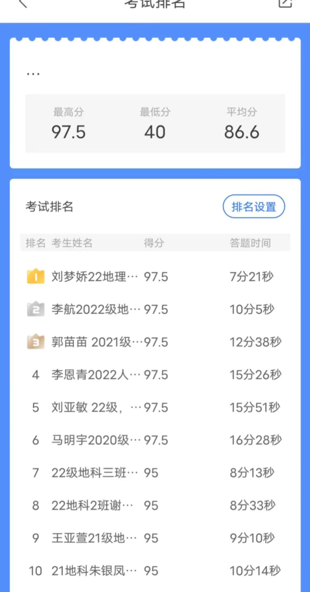 本次活动以网络为媒介,开展线上关于地球日理论知识的竞赛活动。活动内容以地理知识、环保知识为主,题型包括单选、多选、判断,内容涵盖知识面广。要求参与竞赛的同学,在限定的时间内,完成所有题目的作答并尽可能保证正确率。答题过程中,同学们充分展示了自己的地理知识底蕴,展现了地理师范生的精神面貌。经最后统计,22级地理科学班刘梦娇、李航、21级地理科学班郭苗苗三位同学分别以7分21秒、10分5秒、12分38秒的时间优势及得分高低,分别获得此次线上知识竞赛的一、二、三名。