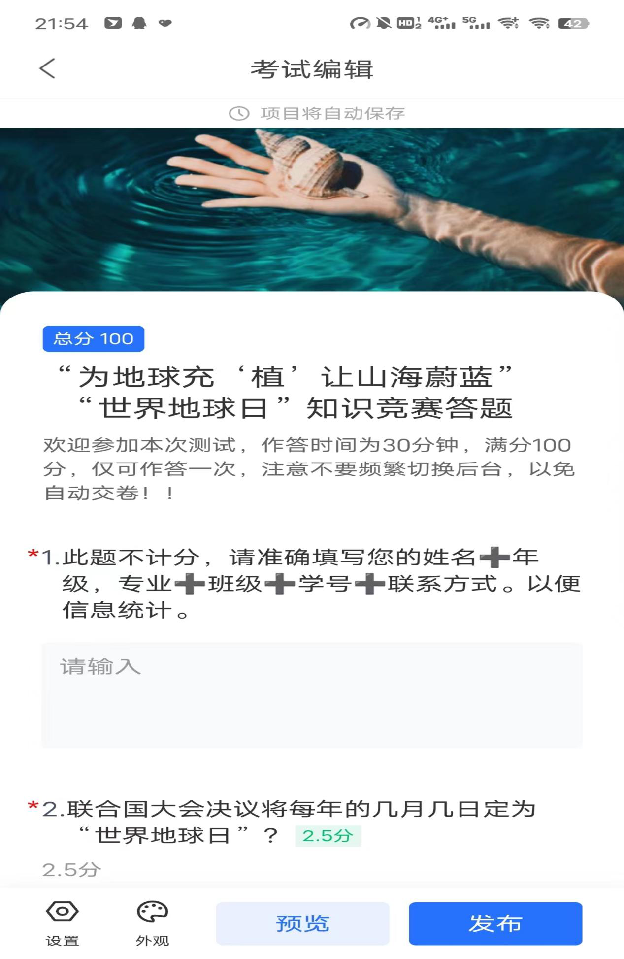 为了进一步彰显公司办学特色,提高地理师范生专业知识水平,营造浓郁的校园学习氛围,加强学风建设。古天乐代言太阳集团于2023年4月22日开展了“为地球充‘植’,让山海蔚蓝”答题活动。