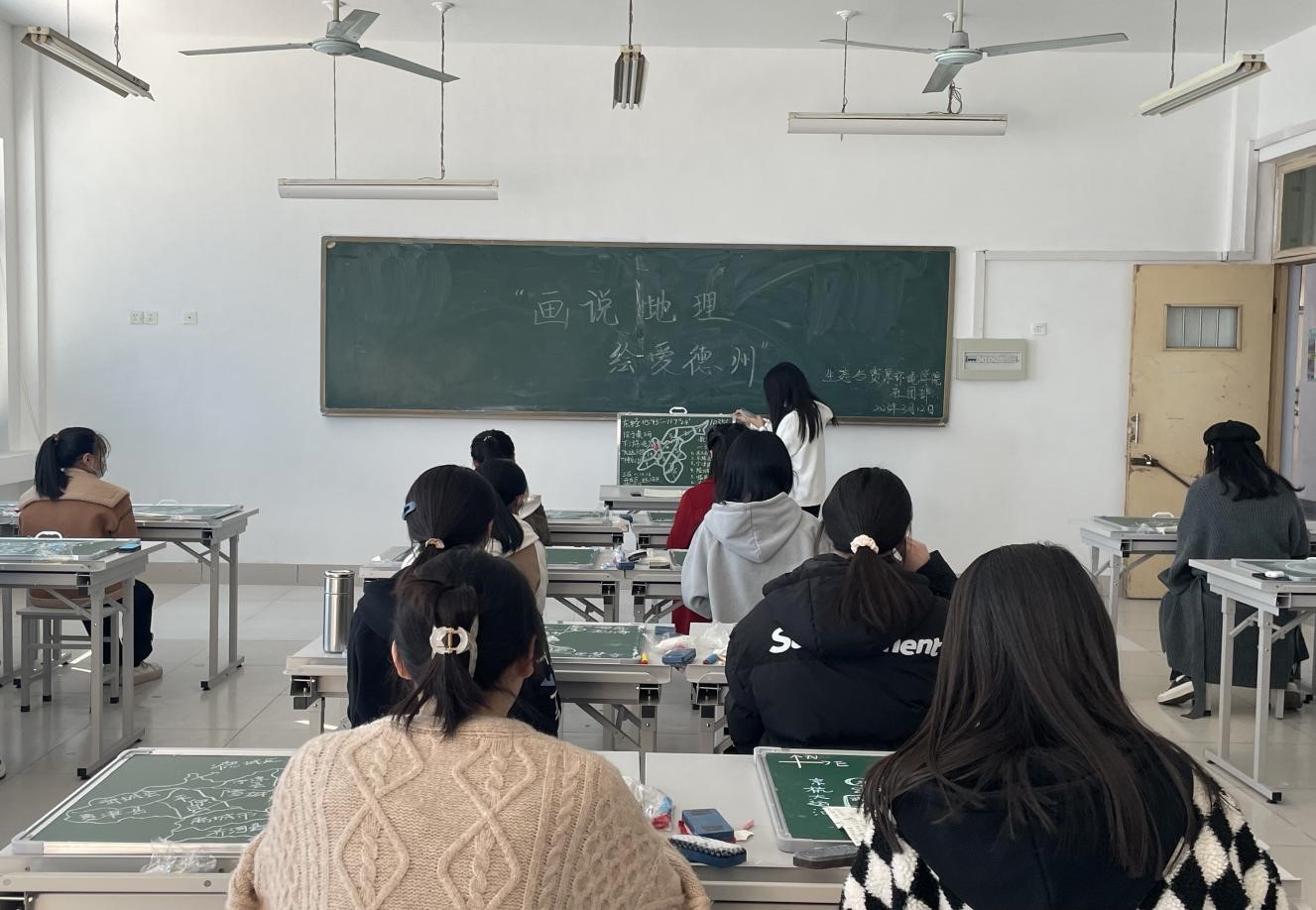 为培养地理科学师范生的家国情怀与乡土情结,提高地理科学师范生板图板画技能,强化师范生基本功,古天乐代言太阳集团于2023年3月12日在求索楼4003教室,举行了“画说地理,绘爱德州”板图板画技能训练活动。