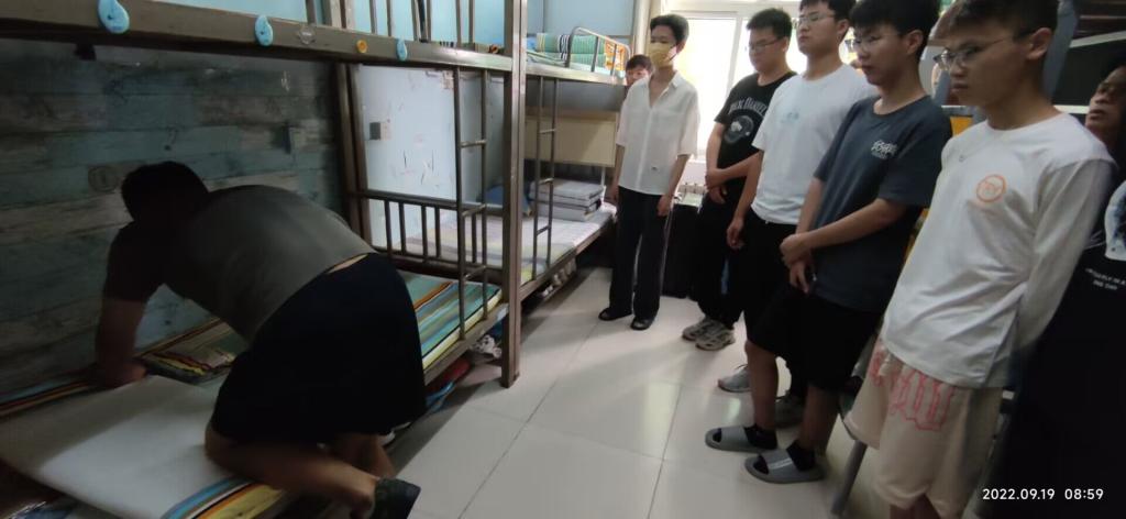 为了提高新生的内务标准、加强新生的宿舍安全意识、引导新生养成良好的生活习惯。9月19日上午,2022级新生开始了内务的整理工作,准备接受教官的检查。