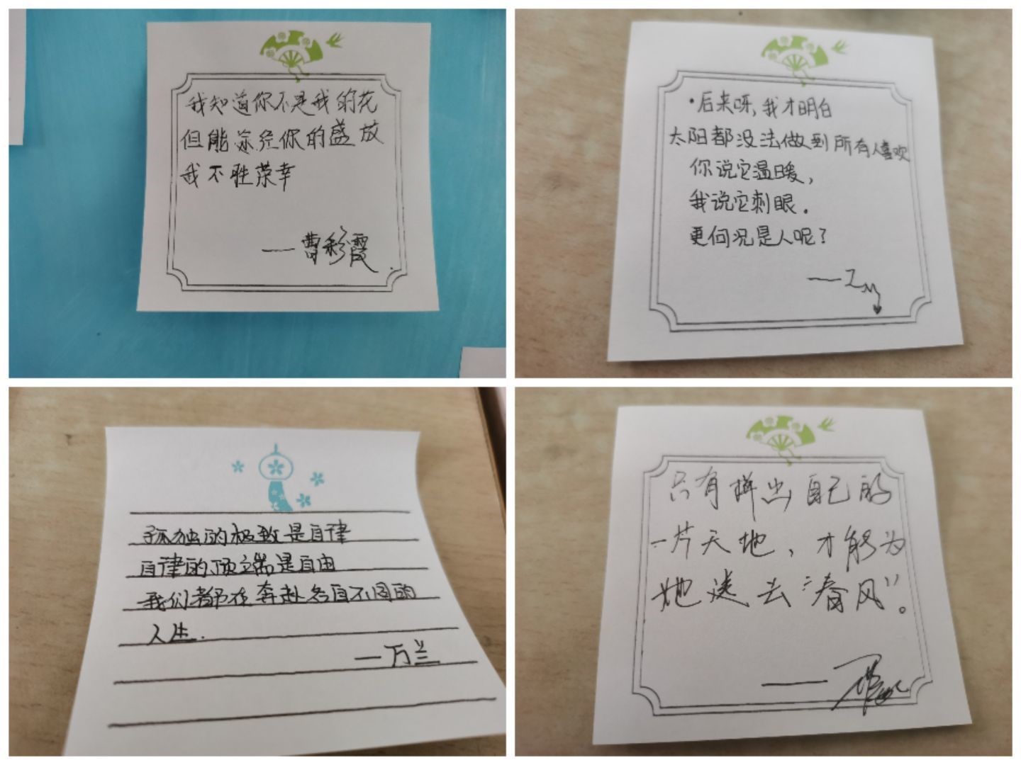 本次活动由公司学工部,网宣部及秘书处联合开展。在活动中,同学们积极参与,并将自己想说的话写在纸条上,通过文字抒发自己内心最真挚的感情。随后,同学们一一将自己的纸条粘贴在宣传板上,使大家能明白彼此之间的心意。