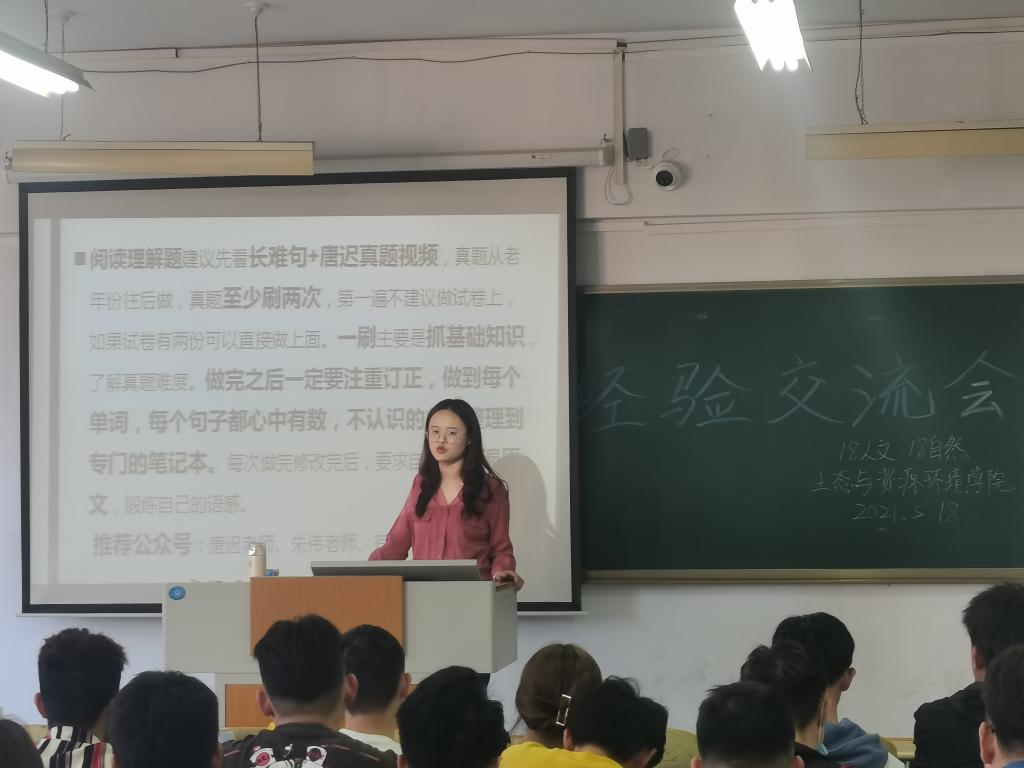 为引导员工明确考研方向,进一步坚定考研信心,2021年5月18日,2018级人文地理与城乡规划、自然地理与资源环境专业在求实楼0401教室举行考研经验交流会。