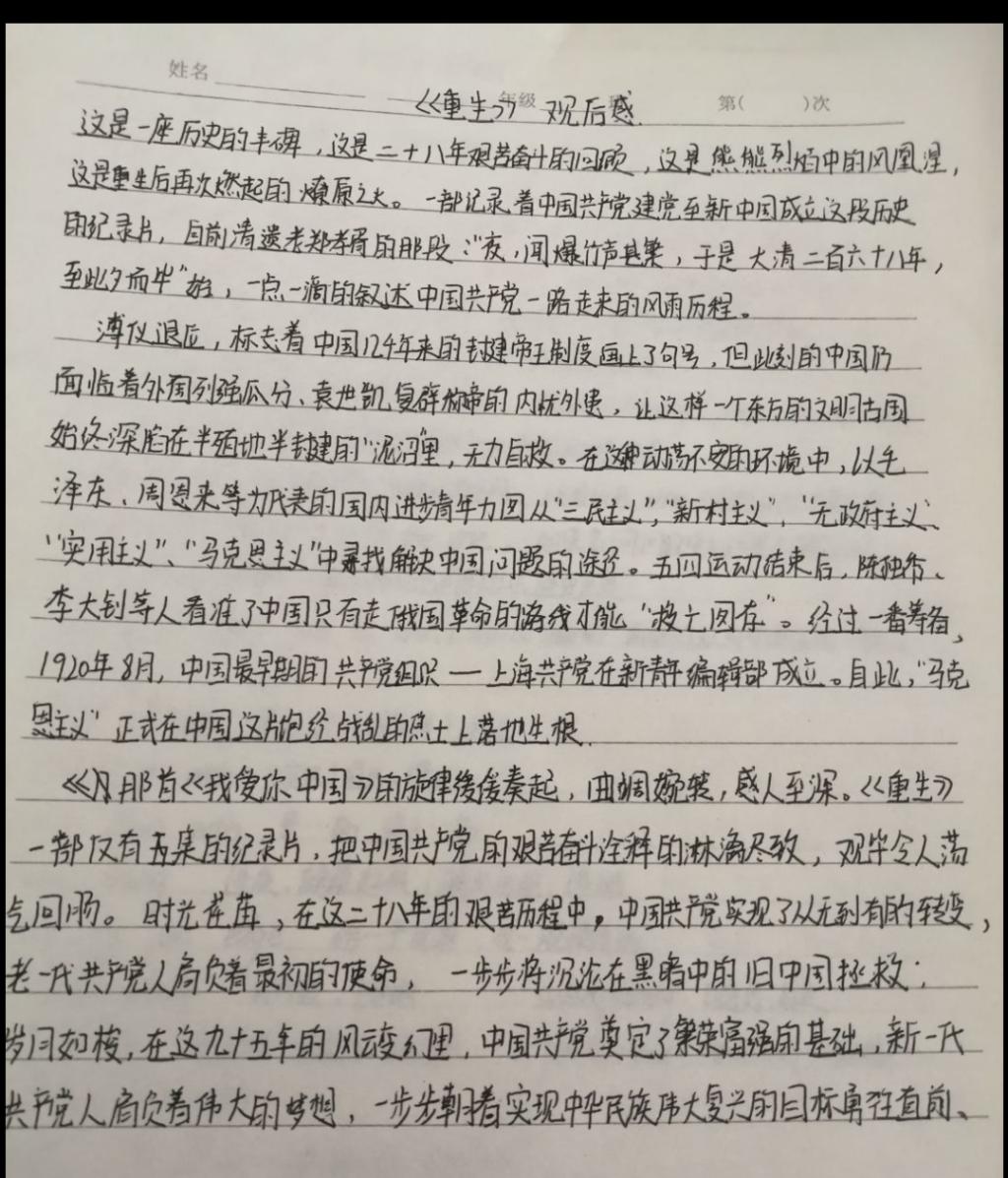 本次活动由公司员工会社团部举办,活动围绕观看党史纪录片《重生》展开。活动线上公布初始,便有许多同学积极踊跃的报名参加,在学习党史的同时,近距离了解共产党员的人生价值观和高尚情怀,感悟历史,并书写观后感。然后将自己的作品发给活动负责人,分享自己的感悟。