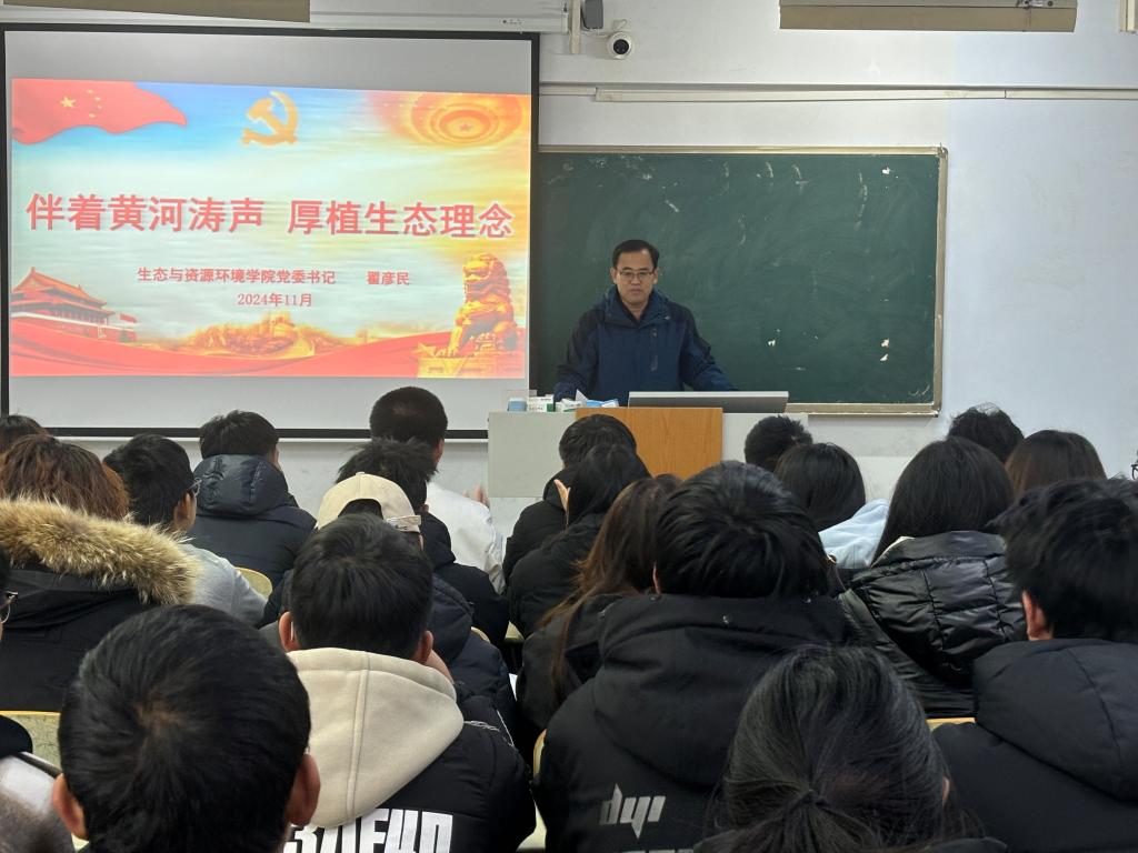 为深入贯彻落实习近平总书记关于高校“大思政课”建设要求和在黄河流域生态保护和高质量发展座谈会上的讲话精神,推动黄河文化深度融入思政课堂,提升思政育人实效,11月25日,公司党委书记翟彦民在求实楼401教室为2024级风景园林和环境生态工程专业全体员工讲授题《伴着黄河涛声 厚植生态理念》主题思政课。