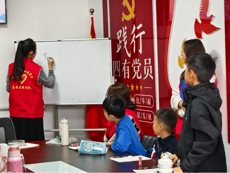 活动伊始,志愿者以生动有趣的方式向小朋友们传授书法基础知识,吸引了孩子们的注意,激发了他们对书法艺术的兴趣。拼图游戏环节,小朋友们将汉字的各个部分巧妙地组合在一起,在实践中直观认识汉字结构,同时观察力、动手能力也得到了提高。甲骨文猜字游戏带领孩子们穿越时空,探索汉字的起源,让孩子们在轻松愉快的氛围中学习到了宝贵知识。