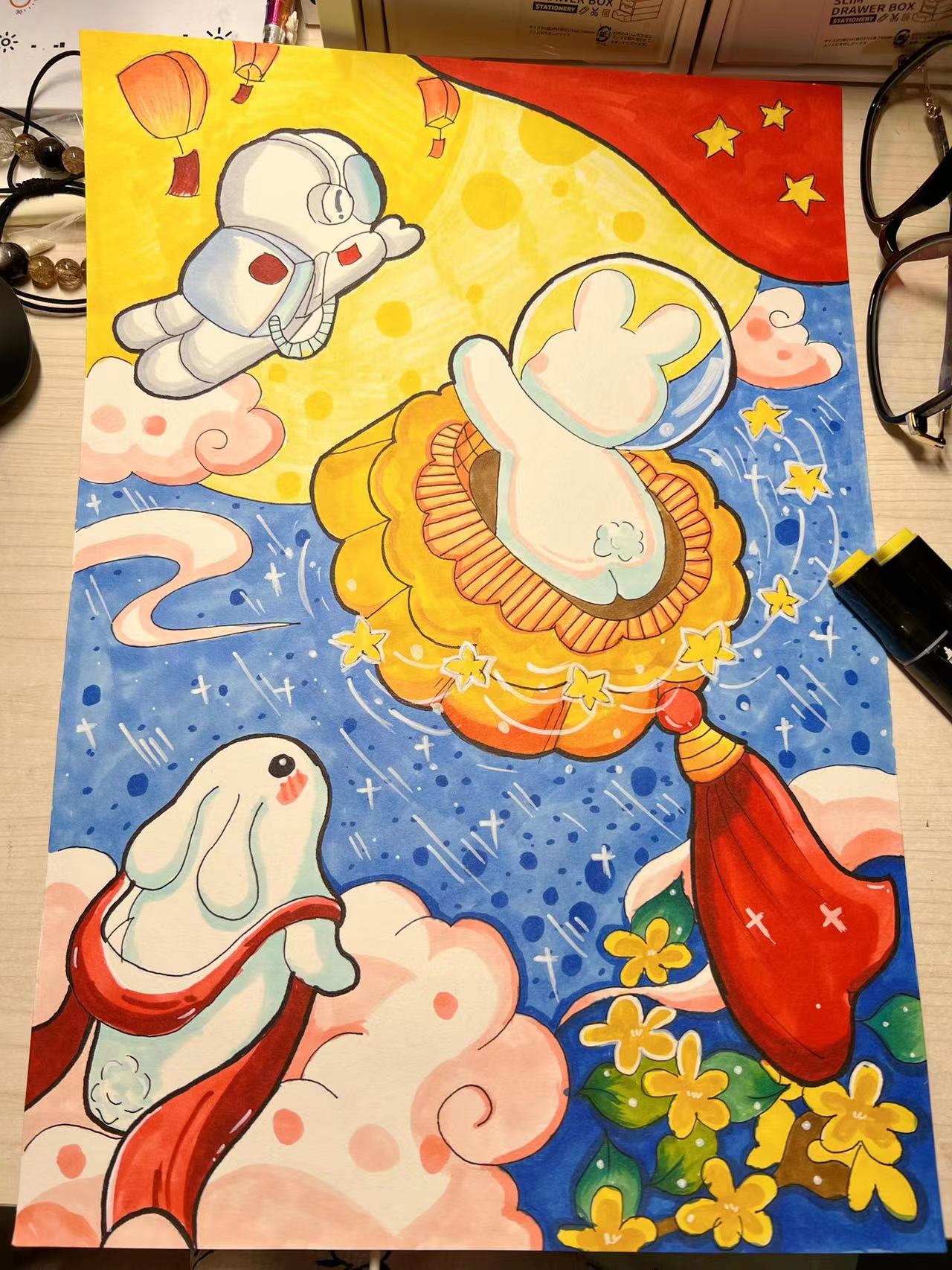 活动内容主要以共度中秋和国庆佳节为主旋律,以弘扬中华民族的传统文化,传承民族精神为主题。活动过程中,同学们将满腔的激情倾注笔端,融入画卷,从画面的构思到色彩的搭配,每一个步骤都一丝不苟,创作了出具有鲜明时代感和艺术表现力的主题海报,充分展现了当代青年积极向上的精神风貌。