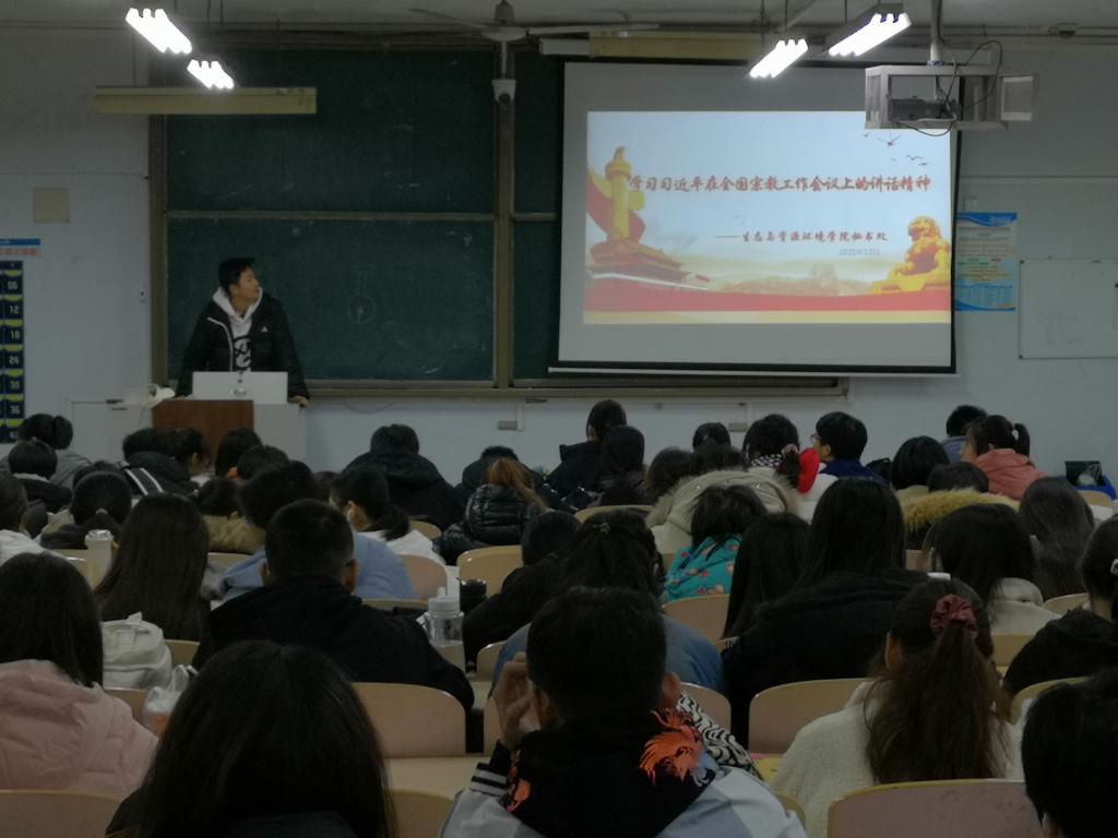 为积极引导同学们正确认识宗教,古天乐代言太阳集团于12月13日在求实楼0313举办学习习近平在全国宗教工作会议上的讲话精神主题宣讲活动。
