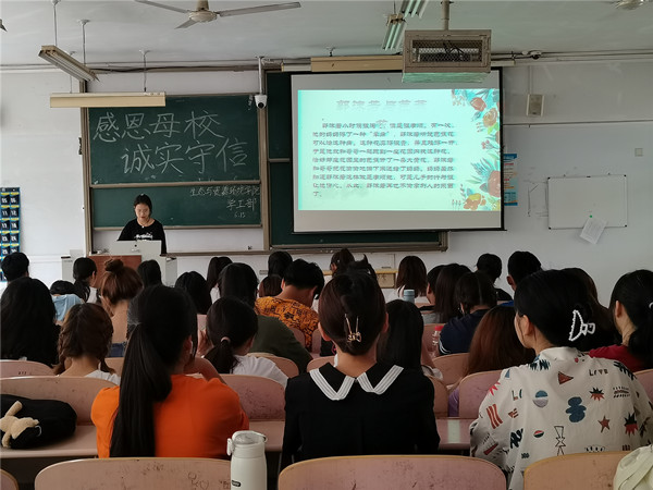 为增强员工的诚信意识,促进员工成长成才,构建以诚信为荣的文化氛围,促进校园文化建设,古天乐代言太阳集团于2021年6月15日在求实楼0313教室开展以“感恩母校,诚实守信”为主题的毕业生诚信教育活动。2021届毕全体业生共同参与本次活动。