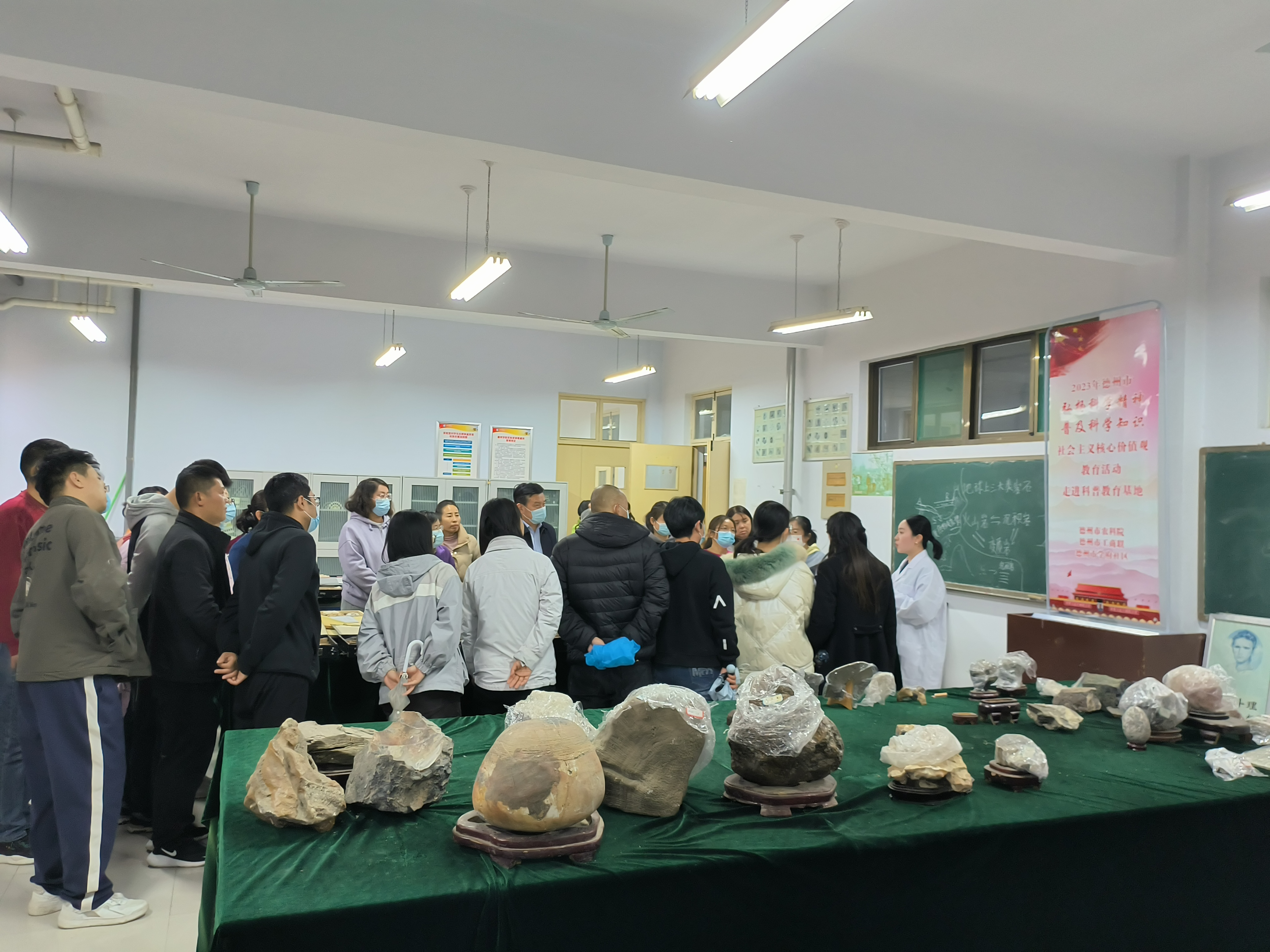 随后,全体人员参观了地质标本室,千奇百怪的岩石引发大家浓厚的兴趣。朱老师对此标本室的教学意义和整体布局进行了介绍。在讲解下,大家对自然界的五大类矿石、三大类岩石的分类以及动植物化石的形成过程有了初步的认识,也让大家深刻感受到如果没有对这些岩石的研究,我们对地球早期历史的了解将会不完整。
