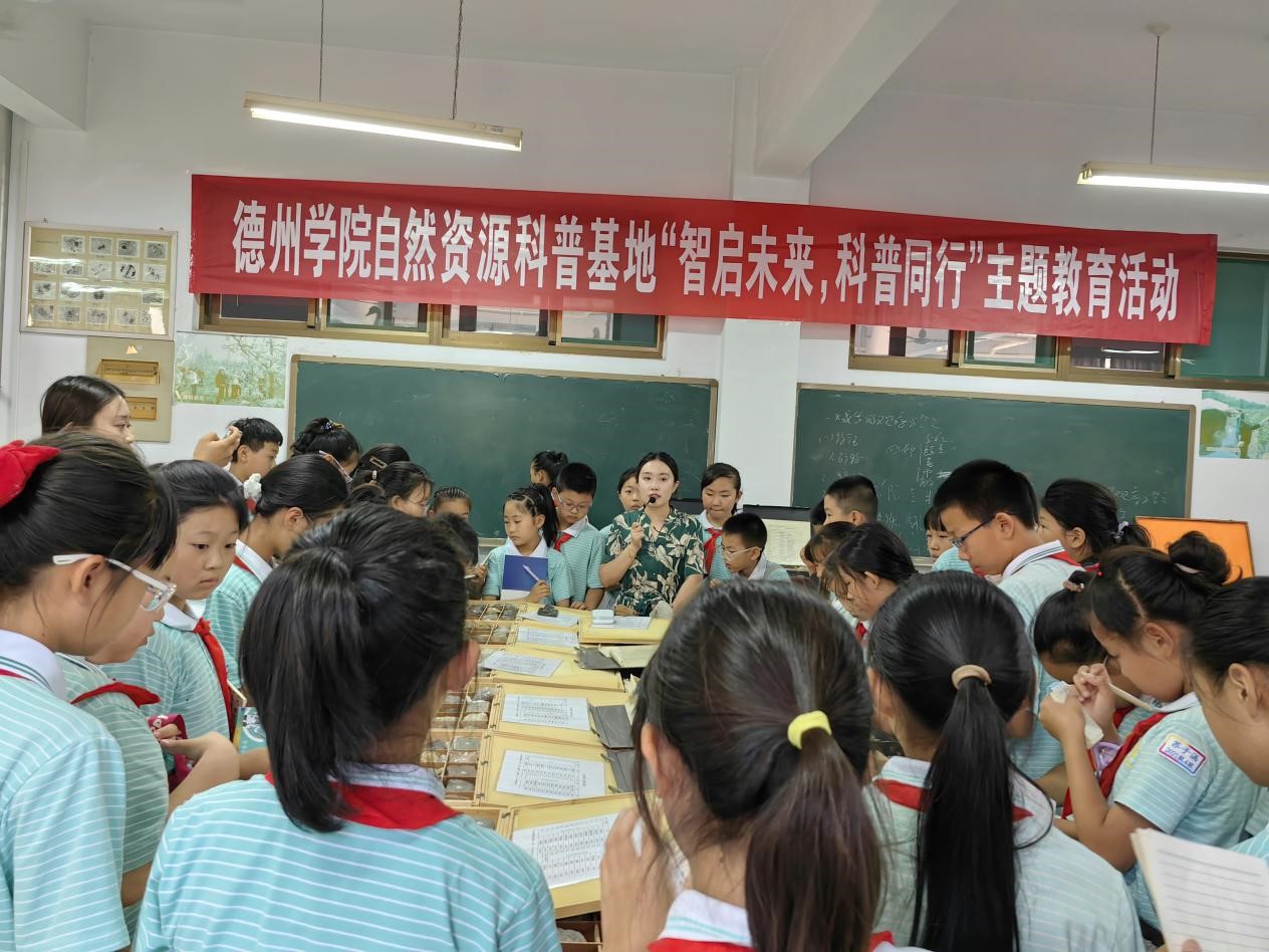 踏入科普基地,孩子们首先被动物标本室深深吸引。形态各异的动物标本整齐陈列,仿佛将广袤自然浓缩于此。讲解员老师生动讲述着有关标本的小故事,孩子们睁大好奇的双眼,惊叹于生物多样性的魅力,深刻感受到每个生命都是生态系统不可或缺的一环,保护动物的理念也在交流互动中悄然扎根;移步地质标本室,犹如打开了一部地球演化的厚重史书。从远古时期的沉积岩到火山喷发形成的玄武岩,从晶莹剔透的矿物晶体到记录地质变迁的化石,讲解员以通俗有趣的语言,带领孩子们穿越时空,解读岩石中蕴藏的地球密码。触摸着承载岁月痕迹的矿石,孩子们领悟到自然资源的珍贵与不可再生,珍惜地球资源的责任感油然而生;昆虫标本室则将孩子们带入微观奇妙世界。五彩斑斓的蝴蝶标本翩翩起舞,身披铠甲的甲虫标本威风凛凛,精巧的昆虫生态场景复原,让孩子们直观领略昆虫的独特生存智慧。在探索昆虫奥秘的过程中,孩子们了解到这些微小生物在生态系统中扮演的重要角色,体会到自然界万物相互依存的奇妙关系,对自然生态的敬畏之心愈发强烈。现场气氛热烈,求知的渴望与探索的热情交织碰撞,激发着无限创意与想象。